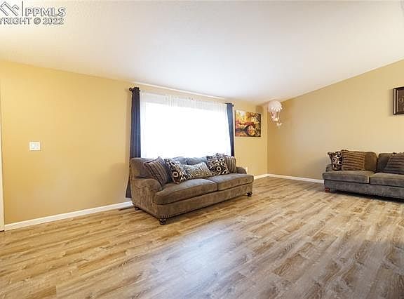 Welcome to the desired Sub-area of Village Seven in school district 11. This parade of homes property offers 2,337sq ft, 4 bedrooms, 3 bathrooms a 2 car-oversized garage on 1/4-acre lot. A true turn key property with new luxury planks on main level, new tile, newer carpet, newer roof, newer windows, new trash compacter, Stainless steel appliances in kitchen, fully renovated bathrooms and much more! Enjoy walking out to your over sized fenced rear yard from your lower level offering 2-sheds for storage(one with electrical) and an automatic sprinkler system. Great location within Walking distance to the swimmery at Village 7 club, minutes to Powers, Academy and the I-25 corridor.