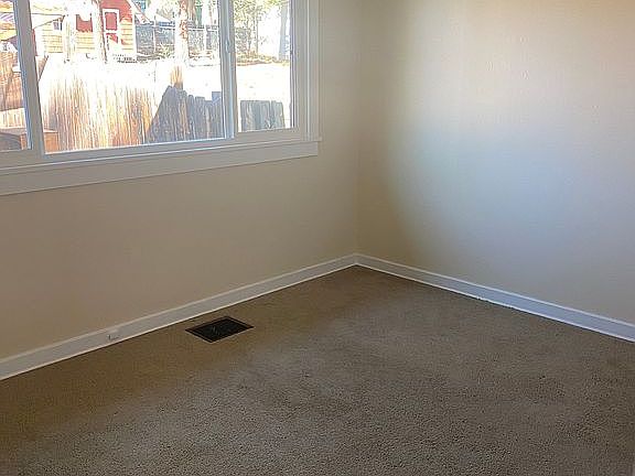 Two bedrooms and a bathroom with a sweet kitchen and breakfast nook. Wood Laminate flooring in kitchen and breakfast area and bathroom with carpet in the bedrooms and living space. Original wood floors are under the carpet and could be refinished. large backyard and open space. Off street parking for two cars. New paint inside and out. New energy efficient windows: