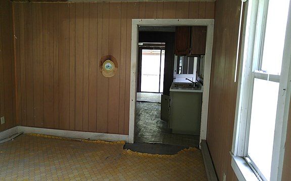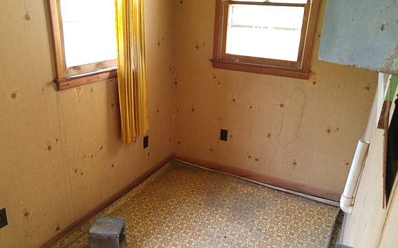 Nice little fixer-upper. House does need work but has a new roof and lots of potential! Two bedrooms, one bath, living room, laundry room, kitchen with flue for wood stove, if desired. Covered back porch with lots of seating. Included is a large 2 car garage with almost 1000 sq. ft. of "almost finished" space above it. Garage has garage door openers, a couple of shelves and lots of space! Upstairs, over garage, the work has been started for you. New sheet rock, new paint on walls and ceilings. New outlets, (need covers), new lighting, and they have started a large bar area for that man-cave you've always wanted! There is even a pool table and foosball table ready for you. Building/garage also has new metal roof. Deck out the back of building but needs railings for steps. Also has a one car carport.