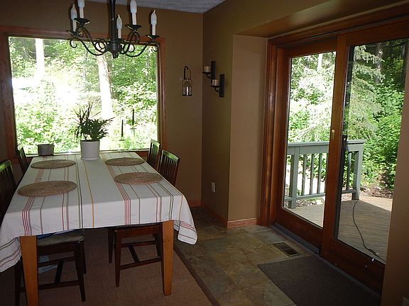 Live like you are in Alaska! You've come all the way to the 49th state, now live the Alaskan dream! Charming cedar-sided chalet located in the woods, at the base of a mountain with trails into Chugach State park out your front and back door. Easy commute to downtown Anchorage, JBER/bases or UAA, APU and Midtown. More affordable than Hillside or Girdwood. Well maintained and updated (granite, tile, exterior stain, hardwood floors, roof) home is approximately 2,120 square feet across three comfortable floors. NEW ROOF INCLUDED!! Attractive, durable architectural shingle roof to be installed 2nd week of August. New owner will hold warranty. On the main floor: • Master bedroom with two closets and adjacent guest room have views down Eagle River Valley. • Main bathroom has shower/tub, new toilet, large vanity and new cut pebble tile floors. • Living room has windows all along south side to look out on forest and mountains, a woodstov and the same durable, good-looking engineered bamboo flooring as in the bedrooms. • Kitchen is open to the dining room, and both have views into the backyard woods. Granite countertops and a great layout make the kitchen perfect for having friends over for dinner or keeping track of kids doing homework at the table while you cook; ceramic tile floors make it easy to keep clean. Large wrap around deck for outdoor living. Upstairs is cozy and spacious: • Second living room perfect for a TV and watching movies, balcony to watch the sunset • Large bedroom with balcony to listen to the sounds of a creek • Half-bath with new toilet and cut pebble tile floors. Down on the ground level: • A fourth large room: approximately 280 sq foot room with kitchenette (apartment sized stove, sink, fridge, cabinets) and a bathroom with a shower, toilet and vanity. Perfect for a visiting mother in law, nanny, roommate or easily turn it into a spacious private master bedroom. This great space has both central heat and a stand-alone gas fireplace has rented for $800, so income potential possible to help with household expenses. • Generous attached one car garage with plenty of storage space, the washer and dryer and utilities (gas water heater, forced-air furnace and well pump for clean, delicious water). Other amenities: • The house sits on 1 acre of wooded, sloped land with a nice level area in front for additional lawn or garden, storage and parking. • Dog kennel connected to garage to be all-season friendly for dogs and underground invisible fence. • Driveway is shared with the best neighbor in the world, with whom you can easily coordinate snow plowing. • Eagle River Road is under construction this summer, and should be in great shape for many years to come. The road is typically plowed by the municipality prior to 6 am so the three school buses coming out to carry kids into school have an easy ride. Summary: 4 bedrooms, 2.5 baths, 2 living rooms, kitchen, dining and 1.5 car garage on 1 acre.