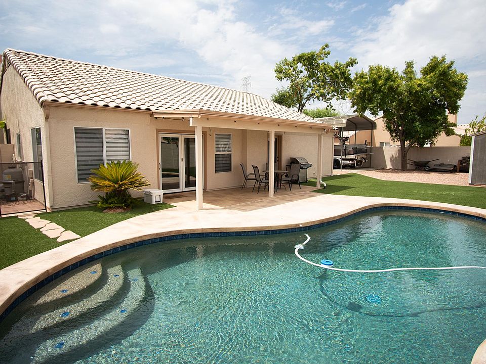 Come check out this completely remodeled and modern home with phenomenal curb appeal! HOME - Massive 12ft Wide RV Gate, Paved & Fully Covered (24.5ft L x 14ft W x 12ft H) - Resort Style, Fully Turfed Backyard for the Ultimate Outside Entertainment - Your OWN PRIVATE POOL! (weekly pool maintenance included in rent) - Luxury Bi-Folding Patio Door - Covered Back Patio with String Lights - Massive 26ft Long Shed for Storage - Vaulted Ceilings Throughout - Brand New Window Screens Reducing Heat Transfer - Epoxy 2 Car Garage Flooring - Luxury Wood Fireplace KITCHEN - Brand New Refrigerator & Gas Stove - Stainless Steel Appliances - Soft Close Cabinets - Large Center Island w/ Eat-Up Bar Seating, Fully Open to Living Room for Entertainment - Modern Floating Blinds for High Natural Light BATHROOMS - Master Bath w/ Dual Vanities, Spa Size Tub, Walk-In Shower - High End, Shaker Cabinets & Hardware BEDROOMS - Master Bedroom Has Backyard Access - Vaulted Ceilings - Super Unique Designer Loft (safety bars can be reinstalled if needed) - Front Office Den Nestled in a quiet Mesa neighborhood, this home has all the attention to detail. Ask About a Furnished Option! Rent: $3,483 Monthly Transaction Fees: $2 Pool Maintenance: $0 (this is covered from your rent and is required) Utilities: Resident is Responsible Total: $3,485 Security Deposit: $3,000 for well qualified applicants Money due at signing: - $3,000 Security Deposit - $3,482 for First Month of Rent - $275 Non-Refundable Cleaning Fee Total: $6,757 (without a pet) Cats and Small Dogs Accepted: 1 in total is allowed. $450 one time pet fee is due at the time of move in. Plus, a $35 monthly increase in rent. NO SMOKING ALLOWED. Rental Qualifications: Please provide proof of income. No evictions or felonies within the last 5 years. Background and Credit check required.