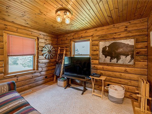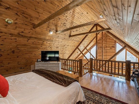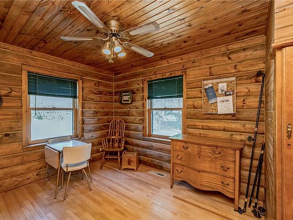 Beautiful log home situated on over 9 acres m/l nestled on a quiet road. This home features over 2000 square feet of living space with timber views. The main level features a vaulted ceiling with lots of natural from the floor to ceiling windows. Two deck doors lead you out to your wraparound deck to enjoy the view from the outdoors. There are 2 bedrooms and a bath and a large loft area that can serve as a LR/master bedroom. The lower level features a walk-out basement with family room. Most of the property consists of timber with a creek and close proximity to the bike trail. Do not miss out on this gorgeous log home! All information obtained from Seller and public records.