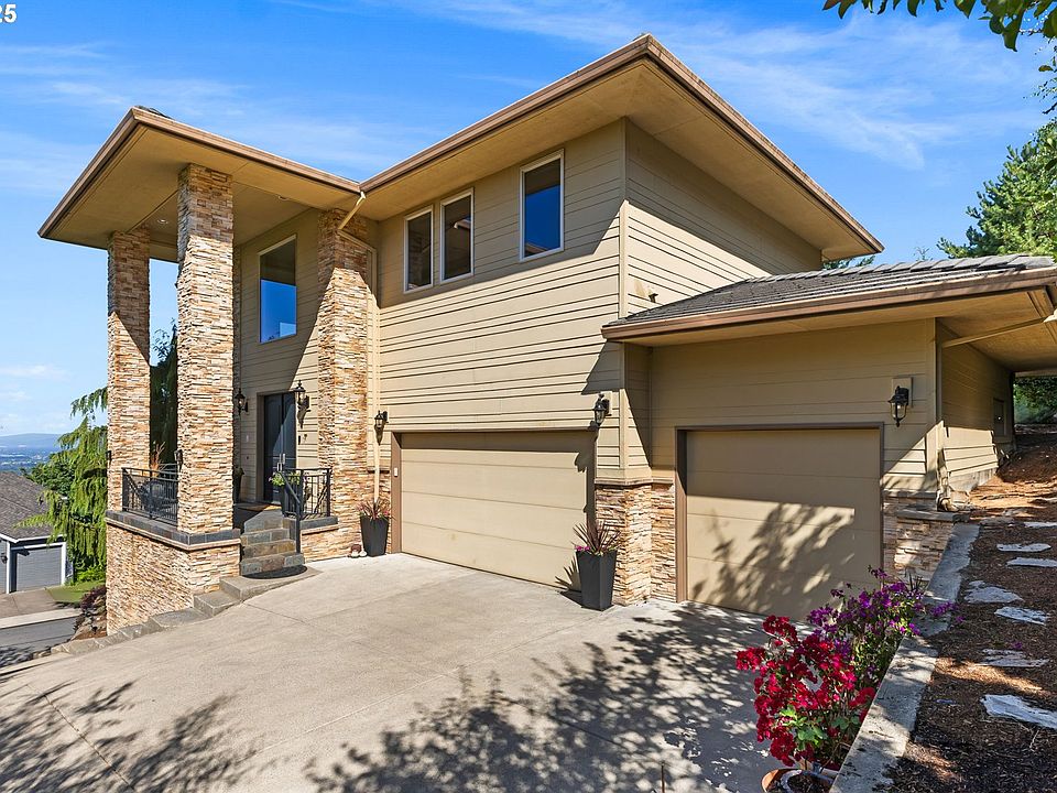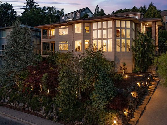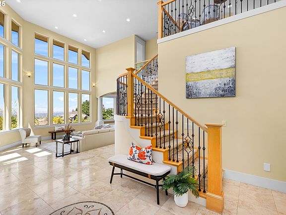 Resort Living Near Work. First time on the market for this stunning custom-built home by Fred Buller in highly sought-after Forest Heights! This luxury residence features a sought after southwest orientation with commanding panoramic views of the Tualatin Valley and Coast Range. Soaring 21' ceilings in the great room greet you upon entry, setting the tone for this one-of-a-kind home. Ideal for entertaining, the open-concept design includes a formal dining room with a pass-through fireplace, a Chef’s kitchen with high-end appliances, oversized island, custom cabinetry with unique glass shelving allowing for light to pass through to each level, walk-in pantry, and a cozy sitting area. Plus a main floor guest bed and bath suiting accommodating all ages of visitors. Step outside to a private garden retreat featuring a 15' waterfall with three distinct water patterns, koi pond, lotus plants, lighting, and serene landscaping—designed for year-round relaxation. Upstairs, the luxurious primary suite includes dramatic views, fireplace, spa-style bath with walk-in double shower, soaking tub, and a custom dressing room with built-ins. Additional upstairs features include guest bedrooms, full baths, and a dedicated home office. Lower level includes a full home theater, game room with pool table, full entertaining bar, and guest suite with private exterior entry—perfect for extended stays, storage and wine cellar. Enjoy the mature landscaping including a custom grape trellis. 3-car garage, high-end finishes throughout, and an unbeatable location close to work and recreation. Ideally situated with a green space lot across the street will provide a protected view in the future. Truly resort living in the city. [Home Energy Score = 1. HES Report at https://rpt.greenbuildingregistry.com/hes/OR10240059]