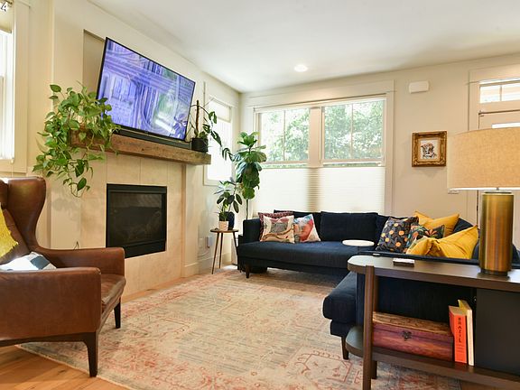 Welcome to this meticulously crafted Lair Hill townhome, built in 2016 to echo the charm of turn-of-the-century Victorians while seamlessly integrating modern comforts. Nestled just moments away from OHSU, South Waterfront, and the Under Armour Corporate Headquarters, this residence boasts a thoughtful layout with two spacious bedroom suites, each featuring generous closet space and its own full bathroom. The main level welcomes you with high ceilings and light hardwood floors, leading to a gourmet kitchen adorned with quartz countertops, an eat-up bar, and top-of-the-line Jenn-air appliances, including a 6-burner gas range. Ample storage is provided by a full kitchen pantry and built-out closets throughout the home. Upstairs, discover a versatile top-floor space ideal for a third bedroom, an excellent work-from-home office, or use it as a family room. The home also features triple-paned windows dressed with top-down-bottom-up window treatments for energy efficiency and privacy. Additional features include tandem garage parking for two cars, a radon mitigation system a tankless water heater, and a mini-split heating/AC system ensuring year-round comfort. Outside, a back deck with a gas hook-up invites al fresco dining and relaxation. Situated steps from a park with tennis courts and within easy reach of downtown amenities, this townhome offers a perfect blend of urban convenience and historical allure.