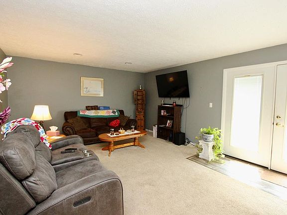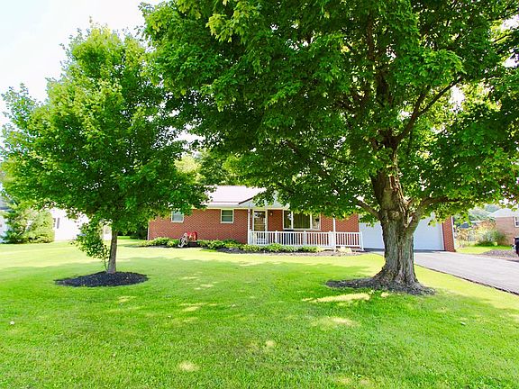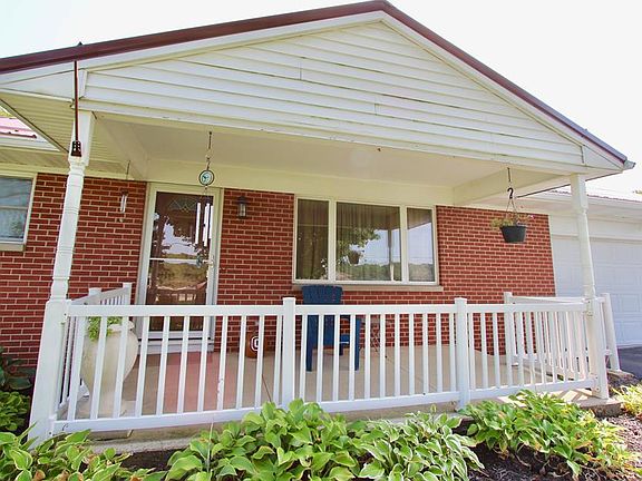 Relax and rejuvenate in your back yard complete with hot tub (2017) on your large patio. Large yard has newer barn (2017) for storing all those extras plus it has a covered porch which is perfect spot for a porch swing. Remodeled kitchen has oak cabinets and comes with all the kitchen appliances plus it has new laminate wood flooring. Kitchen is open to dining room which is open to living room and family room. Family room has slider leading to the extra large patio. Master bedroom has a bay window and double closet. Basement Is unfinished which is great for storage or you could have a rec room. New metal roof & gutters (2019) New electric panel. generator stays & new battery 2017. New garage man door to patio. Newer siding on South side of House. Security cameras, deck storage on patio, gray cabinet in main bath & clothes line stay.