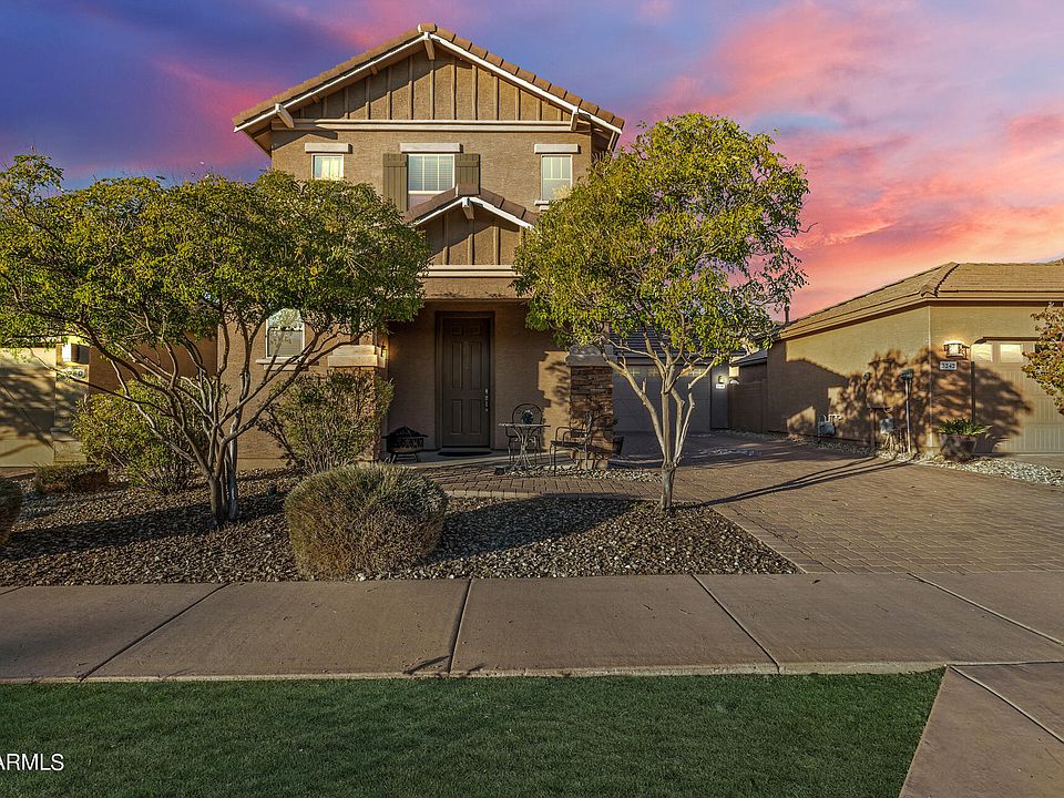 Now available in gated Tramonto! This charming, one owner 3-bed, 2.5-bath home offers a crisp elevation w/stone accents, a 2-car garage, and a paver driveway. Comfortable interior features engineered wood, neutral paint, and a spacious living area for family time. Enjoy meals in the dining area and cook your favorite cuisine in the kitchen, showcasing wood cabinets, Black SS appliances, built-in desk, tile backsplash, granite counters, and breakfast bar. Continue to the main suite w/a walk-in closet, an immaculate ensuite w/double sinks, and a soaking tub. Addt'l bedrooms have access to the 2nd bathroom. The backyard includes a covered patio and enough space to fit a pool. Home also boasts private access to park, 2 heated pools and spas, plus waking distance to shopping, coffee house, hiking and freeway access. Views of mountains and occasional hot air balloons. Schedule your private tour today!