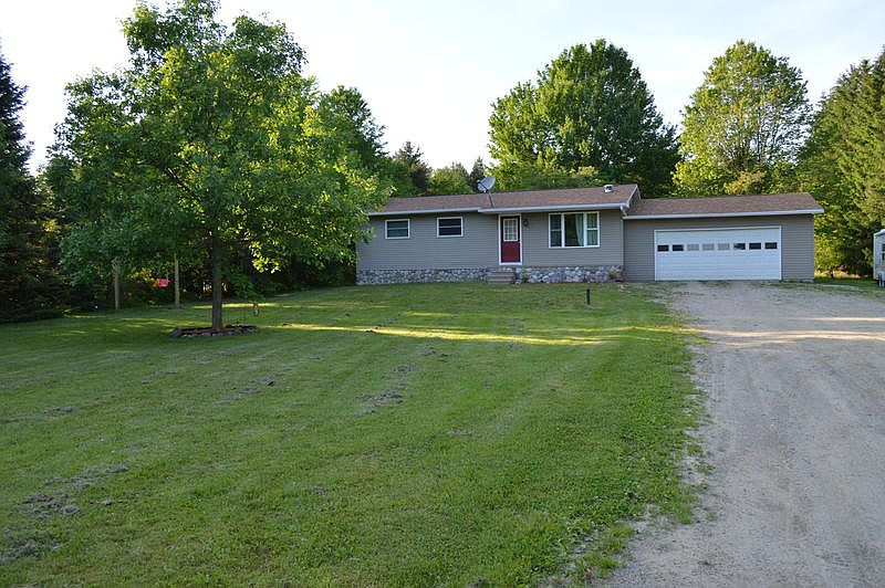 SALE PENDING, UNABLE TO SHOW !!!!! Very nice 3 bedroom ranch home/attached 2 car garage/pole building on approx. 3 acres surrounded by trees. This home is in MOVE IN CONDITION and must be seen to appreciate all of the work that the sellers have made. The following improvements were made since 2009: All new flooring, new kitchen cabinets/counter top/sink/faucet, new kitchen appliances, new bath vanity/sink/faucet, new handicap stool, all new wall switches/plugs/2 GFI plugs, complete interior painted, mostly new light fixtures, New thurmo Jeldwen windows, Started to divide the basement into family room, office and storage room which has the furnace/washer & dryer hookups/water heater/breaker box, new water pressure tank, new well pump, new sump pump, new garage insulated door, new opener w/2 controls, added dog house in garage and a automatic opening dog door-the dog wears the control, new Tyvak/under new Vinyl siding, new gutters/down spouts, power washed deck and resealed, and more. The shop was built in 2004 and is 38x40 with 16 foot walls, 16x14 insulated overhead door, a 36" walk thru door, windows, cement floor, electric and floor drain. The Roof had a complete tear off in 2004+- then some new wood added where needed and new shingles. See the Seller's disclosure for more details. This home is nicely secluded and is surrounded with trees, there are 2 large apple trees and many shade trees. Located approx 1/4 mile west off Washburn Rd, North side.