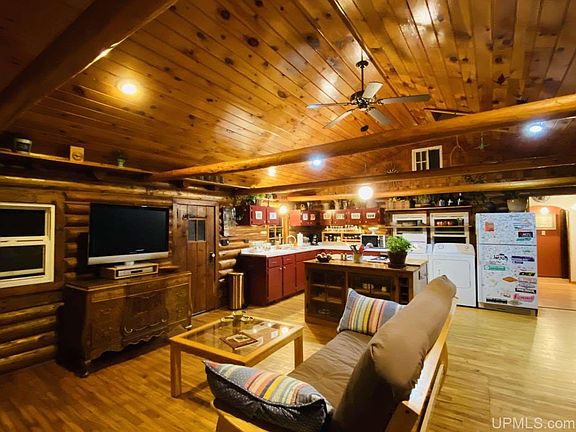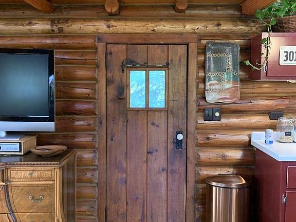 Very charming 1BR/1BA log cabin situated on almost an acre of land (0.87). The care and attention to detail on the cabin and property is very obvious. Mature perennial gardens along with a large front fenced vegetable garden along with strawberries, thimbleberries, hops, raspberries, asparagus and herbs.Two large permanent sheds and a temporary hoop building. The home is very open in the living/dining/kitchen area, accented nicely by the skylights. It has vaulted tongue and groove wood ceilings throughout. Backyard is fenced in and surrounded by a variety of mature trees which give a very private setting. Come see this wonderful property!