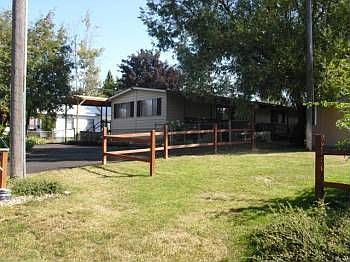 Very nice double wide. New carpet. Vacant easy to show. Master bdr w/full bath separate shower and tub. Kitchen breakfast bar. Built in china cabinet. Wood stove. Large garage and an additional covered parking area. Covered front and back porch. Nice yard fenced for pets.