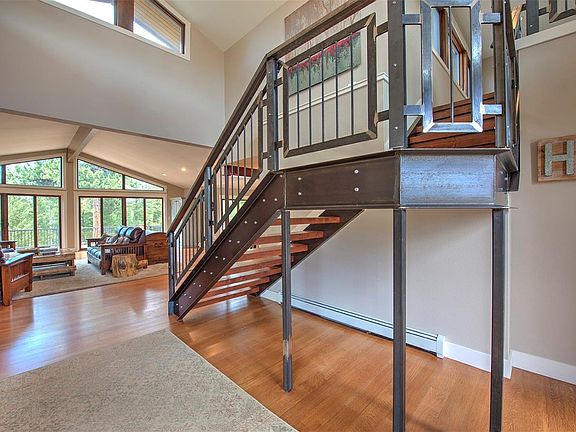 OFFERS IN TONIGHT BY 8pm. FULL PRICE CASH OFFER IN HAND. FLEXIBLE/DELAYED CLOSING OPTIONS NEEDED. Beautiful Updated home in Soda Creek. This stunning home makes a statement with the perfect combination of wood, stucco & stone. The portico is a work of art with stone pillars and a knotty alder door framed in windows. Main living area has vaulted ceilings & wall-to-ceiling windows complete with a picturesque fireplace. The Gourmet Kitchen has soft-close Cherry cabinets, Double Ovens, a Sub Zero fridge and specialty slide outs. Enjoy a large island with leathered AND chiseled granite that has plenty storage. The smart industrial staircase takes you to large recreation/living area, with a half bath for guests, 2 bedrooms with a Jack-and-Jill full bath and a flex space with endless possibilities. As if this house isn't fabulous enough, you have a 4 car garage with designer doors and a heated workshop. Gorgeous Trex Deck. Property is perfect combination of meadow and trees!