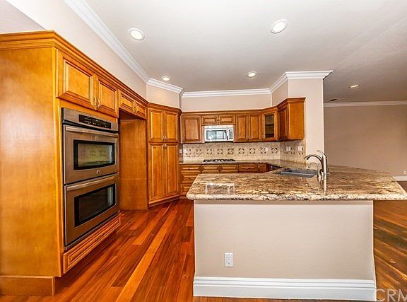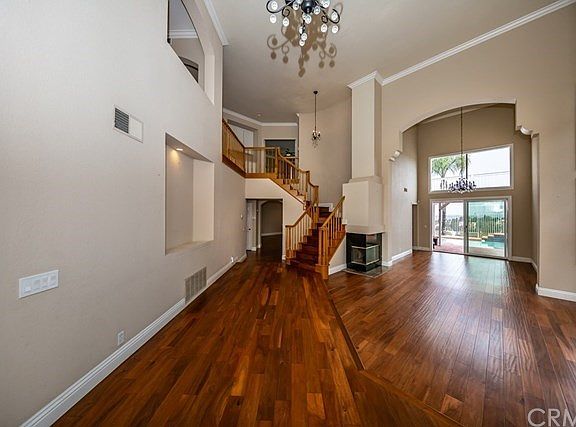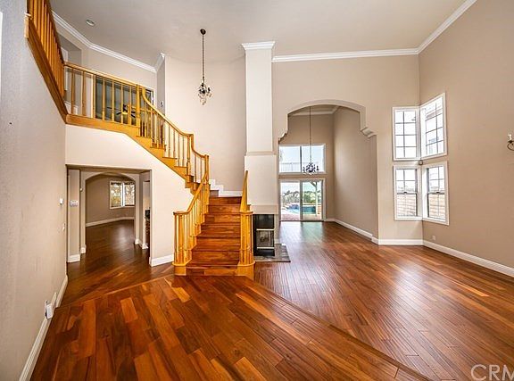 Unobstructed, 180-degree views distinguish this beautiful cul-de-sac pool home nestled in the foothills of the Cleveland National Forest in Sierra del Oro. As you enter, two-story-high ceilings, views seen from every venue and upgrades galore accentuate this 4-bedroom pool home. Throughout this entire home, including the baths you will find gorgeous wood floors with 6-inch baseboards, elegant crown moldings and window moldings. The completely remodeled kitchen is integrated into one big great room with the family room and features upgraded cabinetry with soft-close drawers, granite counter tops with full backsplash, a large breakfast bar with casual seating, and stainless-steel appliances. Nearby, the family room features recessed lighting a warming fireplace and views. Enjoy the cool breeze from the master bedroom's balcony and bask in the city lights, and gawk at the 4th of July fireworks from multiple cities. This isolated master bedroom also features a completely remodeled master bath with a separate tub and shower and a walk-in closet. There's also a bonus room upstairs. The entertainment style backyard features no homes behind, a swimming pool and spa, large patio and decking areas, and amazing views. Other amenities include a downstairs bedroom and full bath, all remodeled baths and upgraded heating and air system. It's only minutes away from the 91 freeway and express lanes, the 241 Toll Road, 71 Expressway, and the Metrolink station. Move in date is ne