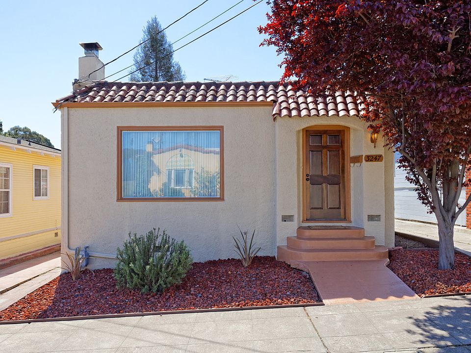 Charming Mediterranean style home in coveted Upper Peralta Creek within the popular Deering / Bona loop area. This home is approximately 841 square feet offering 1Br/ 1Ba with sun room, a large walk-in closet, a formal dining room adorned by two original, built-in corner hutches. The living room is decorated by a Spanish Colonial style fireplace, arches and other architectural accents. The low maintenance, private backyard & detached 1 car garage complete this home. Located close Dimond and Laurel shopping areas. Close to the 580 Freeway. The Fruitvale neighborhood has its own Bart Station. Just blocks away is a fenced in playground. Nicol Park offers children-slides, benches, and shady trees to the locals. The recently opened, family owned neighborhood store Gazzali's is everyone’s favorite, is close by. Mediterranean custom styled 1926 built home. Flowing, easy living floor plan. Spacious size for a 1 bedroom. 841 square feet as per county records. Plentiful windows for light filled living. Formal entry with hardwood floors. Arch accented fireplace. Built ins in old craftsman style. Corner hutches in dining room. Hardwood floors in living and dining. Neutral color tile in kitchen and full bath. Kitchen has built in open shelving. Tiled counter kitchen workspace. The kitchen has a gas stove, washer-dryer combo and tiled floor. A dutch door in the kitchen opens to the sun porch and onto the back yard. Bedroom has large walk in closet and hardwood floors. The bonus room is adjacent to bedroom and looks onto sunny back yard. Sun porch connects kitchen to the bonus room and to the back yard. Low maintenance back yard gets lots of sun and is fenced in for privacy. Garage with new roof and cement floor is ready for your ideas. This house has all the basics and more and it is ready for you to make it your own home. There are some replacement windows with insulated glass. The small bonus room adjacent to bedroom south facing with windows to the back yard. The sun room or enclosed back porch collects radiant heat from the strong south facing exposure. All in all, this is a very charming property, it is rather large for a one bedroom and the bonus room presents other possibilities. The back yard is south facing and should delight the green gardener in us all. Detached garage adjacent to the back yard may be used for a workshop, business tools if you are a tradesperson, man or woman cave, potting shed, or just plain storage for bicycles, skis, luggage, holiday decorations, you name it, put it here. This property is listed in the East Bay Regional Data MLS ( multiple listing service) # 40732868.