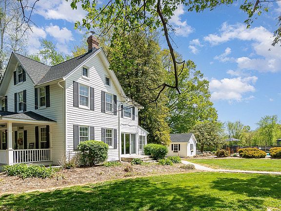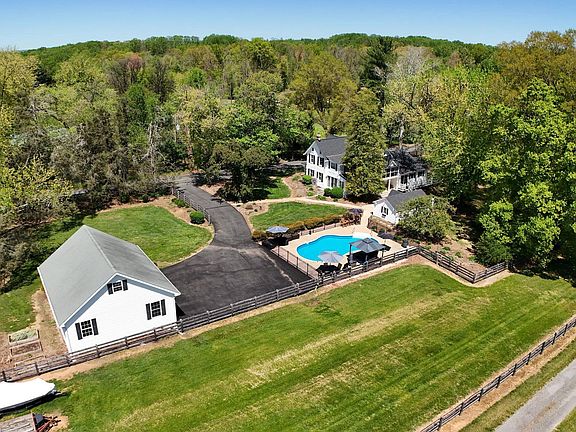 Step into timeless charm and modern convenience with this beautifully updated 5BR/2.5BA farmhouse , nestled on a serene 2.5-acre lot + an additional 2-acre parcel offering unmatched privacy and space-(approx. total 4.5 ac lot conveys with this listing). Ideal for horse lovers, this property is fully enclosed and features two barns (sold as-is) with a stable, perfect for equestrian use or hobby farming. The home blends historic character with modern upgrades, including a newly added kitchen, mudroom, and main-level primary suite complete with a cozy gas fireplace and a luxurious ensuite bath. Recent updates include a new roof, vinyl siding, generator, flooring, fencing, and a water softener system to name a few items—ensuring peace of mind and move-in readiness. A bright and airy family room with a wall of windows + remote window shades showcases stunning views of the tranquil in-ground pool (new liner) and lushly landscaped grounds. Upstairs, you’ll find 4 additional bedrooms and a charming screened-in porch with low-maintenance Trex-style decking—an ideal spot to relax and unwind with serene views of nature. Outdoor living shines with a spacious Trex-style deck w/ retractable awning is dreamy for summer evenings under the mature trees, while the massive 36'x30' three-car garage with 9-foot ceilings and an upper-level loft (with electric and water) offers versatile space for storage, a workshop, or future expansion. An adorable Amish-built shed near the pool, complete with electricity, adds even more flexibility as a pool house, studio, or "she-shed". This historic yet thoroughly modern home is a rare, beautifully maintained gem—ready to welcome you HOME. See attached tour video & list of the incredible improvements this home has to offer!