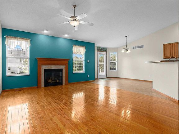Beautiful three bedroom Bayfield model in sought-after Villas at Crossfield Estates. You'll find a sunny entry area with decorative leaded glass door and hardwood flooring that leads into the open and inviting living room. Vaulted ceilings, ceiling fans, and a gas fireplace with attractive tile surround and wood mantel highlight this space. The large kitchen makes meal time and entertainment prep easy with plenty of counter space, a breakfast bar, and a beautiful dining area that provides access to the covered patio. A large laundry room offers ceramic tile flooring. Conveniently located on the main level is a roomy vaulted master with huge bay window and en-suite bath that features dual sinks, a glass shower, and towel closet. Spacious second bedroom includes a full bathroom with recently added walk-in tub/shower combo. Full finished basement offers a third bedroom and full bath along with a spacious family room. Tons of storage space too! Landscaped lot and attached two car garage.