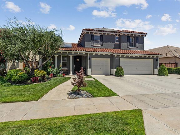 This stunning 5bed/3bath property is located in the surrounding Harland Ranch area of Clovis. Located on Cul-de-sac within close proximity to a neighborhood park. This home features beautiful curb appeal with 3-car garage, RV Parking space, mature landscaping and a freshly painted exterior. Upon entry you will be greeted with open family and dining space. This flows into the updated kitchen and second family living space with bedroom downstairs. Second story features plenty of room for your family to grow with 3 sizable bedrooms and large master with private bath. Backyard is your own private getaway featuring large gated pool area surrounding gorgeous pool/spa and peaceful water feature, built in outdoor BBQ station, and large grass area. All of this surrounded by mature landscaping ensuring your privacy. This magnificent property features completely owned solar, freshly painted interior and is in the desirable Clovis Unified School District.