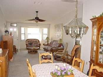 Join the fun at Highlands Fairways Golf Community! This well maintained 2 Bedroom, 2 bath home is spacious and open, located at the 18th tee, a quick walk to the clubhouse with lots of activities, heated pool, and tennis courts. A split plan, withkitchen opening to dining area over breakfast bar, newer refrigerator and glass top stove, newer faucet, with separate inside laundry leading to 2 car garage with space and door for golf cart (also available for purchase); inside laundry leads to garage with storage cabinets, newer GDO; marble window sills and blinds are included throughout this exceptional home. Living room is attractively set with bay windows, perfect for enjoying sunsets. Glass window enclosed back porch has portable AC and enjoys the golf and sunrise views. Paver walkways and patio;quality wicker furniture in home is also available for purchase. Quit talking about retirement and just do it! Located between Tampa and Orlando, near I-4, 35 minutes to Disney World, close to grocery store, hospital, restaurants and mall.