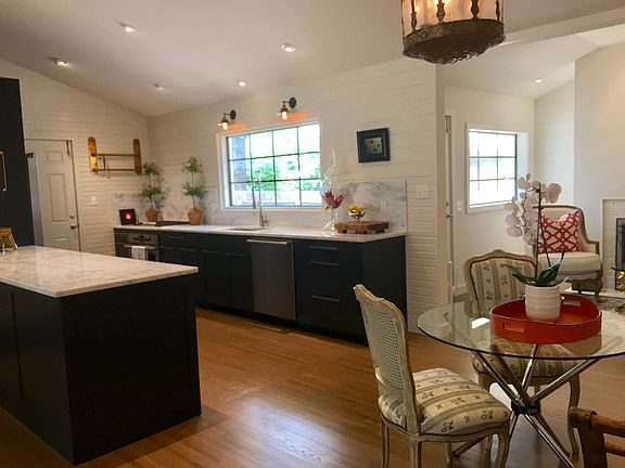 This midtown home has totally been taken to the studs in 2017. All new heat, air, plumbing and electrical. Living room, dining room and study have vaulted ceilings with large wood beam and are all open to the kitchen. Custom kitchen cabinets with Carrera marble countertops and Carrera marble slab backsplash on tongue and groove wood wall. Bosch stainless appliances, large stainless sink. Inside laundry: sliding barn door made with antique French cabinet doors: Refinished original and new oak floors: study with fireplace: Restoration Hardware lighting throughout: security system with smoke and carbon monoxide monitoring: both bathrooms with marble and tile: Restoration Hardware and antique mirrors: privacy fence