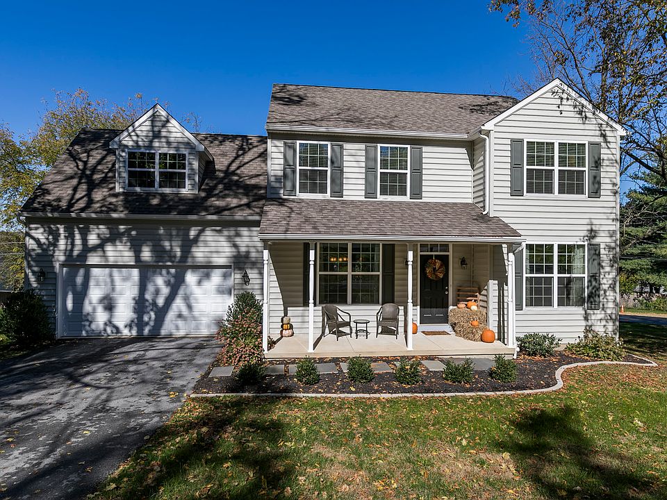 This almost new home is nicely sited on a corner lot in a quiet area of Downingtown. The neatly landscaped front yard, flagstone walkway and charming front porch provide a welcoming entrance . The inside is stocked with amenities like 3.25" Gunstock hardwood flooring, 9' ceilings, crown moldings, a neutral paint palette and energy efficient windows. Past the front door is a foyer with hardwood flooring flanked by a formal living room and dining room . There are more of those beautiful hardwood floors in the powder room and spacious eat in kitchen and breakfast area. This space is equipped with lots of cabinetry and workspace topped with granite, stainless appliances, under mount stainless sink, designer pendants and recessed lighting. The breakfast area has a big window with a view, access to the 2 car garage and a glass door to a large deck overlooking a tree lined backyard. The family room adjoins the breakfast room and is warmed by a gas fireplace. The second floor features the owner's suite with large walk in closet and en suite with double vanity. There are 3 more spacious bedrooms, all with lighted walk in closets, serviced by a hall bath. The convenient laundry area is also located on this floor. Head downstairs to the finished, daylight basement which has superior foundation walls and has been plumbed for a full bath. There is also the added convenience of a 80 gallon water heater. Convenient to major transportation routes, close to R5 Thorndale Train Station, restaurants, parks and shopping. All this and no association fees, rules or regulations. Sounds just right!