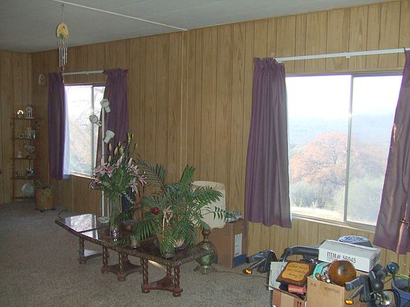 You have to see the condition of this home to believe it. It is 4o years old but the evidence is only the style. This home has been maintained by a retired military man and wife with an eye for detail. Very solid and livable. Defiantly not a tear down. You need to see the inside to believe it. One owner only. New carpet through the home. Large living room with a open floor plan. The kitchen flows nicely into a nice good size family room. New dual pane windows in both bedrooms and the master bath. Master bathroom has a large relaxing tub. There is a back up generator that comes with the home to keep you going in times of occasional power outages. Kitchen appliances included. Old frame for above ground being removed. Property has an old barn and small "shop" building. The home is located on the top of the hill with a view to kill for. Lots of room for a garden in Mariposa's "Banana belt" No neighbors on top of you to spoil your view. Cash buyer because of age and not on permanent foundation. The neighboring parcel, APN# 017-480-093, of 5.2 acres is available to purchase with this parcel for a total asking price of $169,900. Shown by appointment only. No drive by's please.