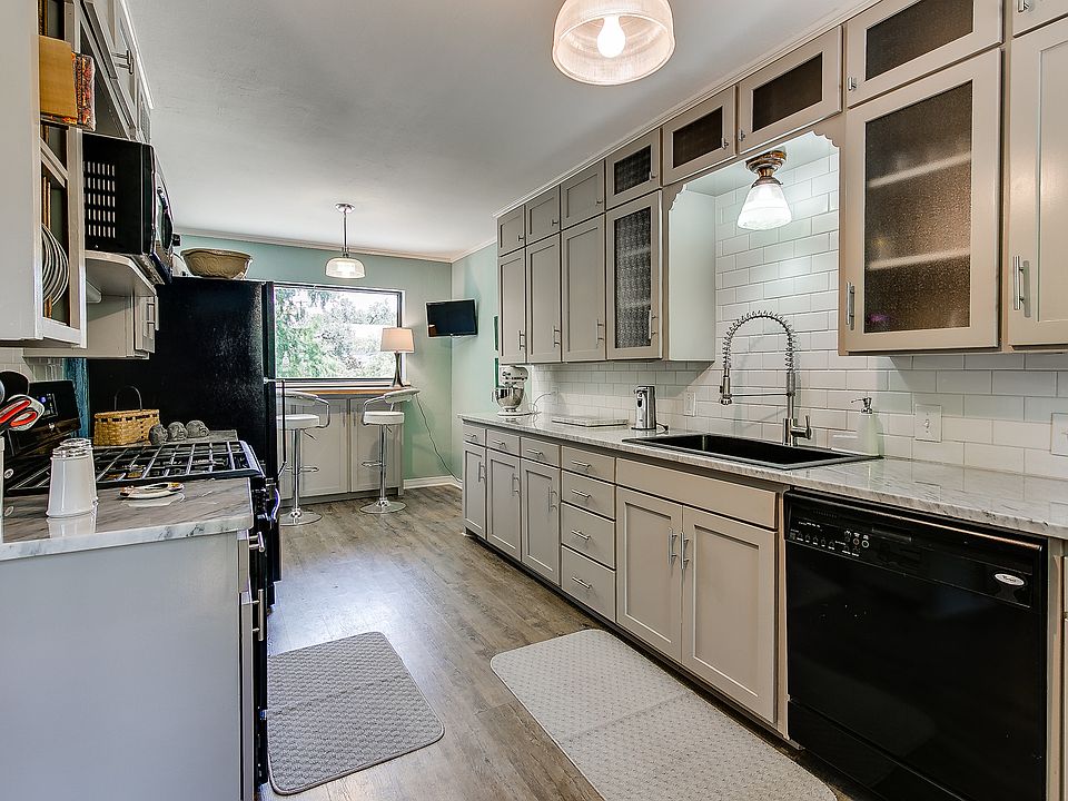 Venice Area. Tree Lined Street. Hardwood floors throughout home, Marble baseboards, quartersawn wood fireplace and woodwork throughout living area. Formal dining room with built-in hutches, heavy crown moulding throughout. Large bedrooms with big windows with view of trees. Fantastic backyard with wrought iron and stone courtyard, hot tub area. Special home!