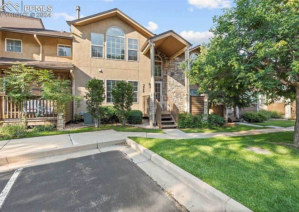Enjoy the lake, trails, clubhouse and pool in this Beautiful 3 bedroom condo in the Broadmoorings across the street from Quail Lake! Conveniently located just minutes to Fort Carson and Downtown, there is easy access to I-25 and the area's best shopping and dining. This home features a stucco and stone exterior, front and rear decks and an oversized 2 car garage with additional storage and Central AC. The home has been VERY WELL kept and has new carpeting in the upper level and bedrooms. The main level features beautiful hardwood floors, triple sided fireplace and inviting kitchen with a breakfast bar, convection oven, under cabinet lighting and granite counter tops! The master suite features a vaulted ceiling, great natural light and his and her walk-in closets. The 5 piece master bath is huge and includes dual sinks, stand alone shower and large jetted tub. The laundry room has easy access on the upper level. The secondary bedroom on the upper level has an in-suite bath and a walk-in closet.
