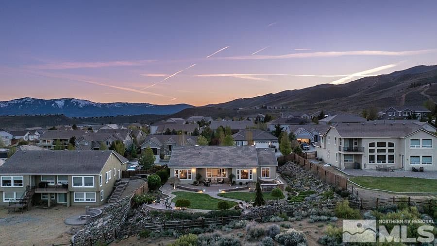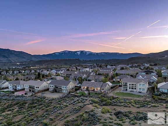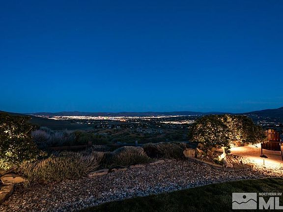 Located high on the hill in a cul-de-sac, in desirable Granite Ridge community, this home offers breathtaking panoramic city views and serene open space behind the property. It features a spacious covered patio and a beautifully landscaped backyard, ideal for relaxing or entertaining. The house itself includes three generous bedrooms, 2.5 luxurious bathrooms, a versatile den or flex room, elegant formal and casual dining areas, and an expansive great room concept with a fireplace, . This stunning property combines comfortable living with panoramic vistas, making it an exceptional place to call home. Backs to a forest area with no future building allowed, preserving the designated open space. Built in 2006, the home is located on a level .38-acre lot. The backyard features a built-in outdoor kitchen area, evergreens, perennials, fruitless trees and extended paver patio and walkways, with views from the entire back of the house. Inside, you'll find hardwood floors, new carpet, and the primary bedroom is thoughtfully separated from the other bedrooms for added privacy. Additional features include ceiling fans, a kitchen with granite counters, and convection double oven, hardwood floors, new carpet - impeccably maintained by original owner Located in Reno, Nevada on Diamond Ridge, Sage Bluff and Robb Drive off Las Brisas, Granite Ridge Community Association is a 176 single family residence community. Amenities offered are endless walking trails, common area landscaping and snow removal from certain sidewalks. Close to shopping, schools, UNR and freeways.