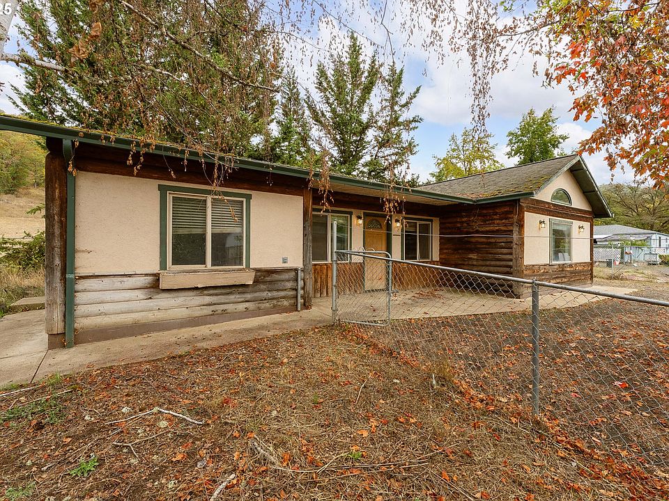 WOW! INVESTOR SPECIAL! Tucked away on the end of a quiet street, this property offers a rare sense of privacy and potential. Set on a .28-acre lot that backs up to open, undeveloped land, this 2-bedroom, 1-bath home is 1,441 square feet and is ready for its next chapter. Inside, vaulted ceilings with exposed wood beams add character and warmth to the open floor plan. Large windows bring in natural light and frame views of the surrounding trees and hills. The tile flooring runs throughout the main living areas, creating a cohesive, low-maintenance foundation for renovation. The kitchen offers generous counter space, a walk-in pantry, and built-in appliances with a solid layout to work from. The attached garage could easily be converted to additional living space. Outside, the fenced yard features mature trees, a detached carport, and plenty of room for RV parking, gardening or expansion. With no neighbors behind you, the setting feels peaceful and private, yet you’re only minutes from town conveniences, shopping, and easy freeway access. Whether you’re an investor, builder, or want a project to make your own, this home is a promising project with good bones, natural surroundings, and room to add serious value. Bring your vision and your toolbelt! Schedule your private tour today!