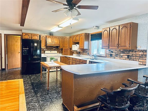 Sprawling 3 bedroom 1.5 bath split level in a peaceful country setting. This partially furnished home boats and open concept design. The kitchen and dining area flow seamlessly together and features a walk in pantry with a chest freezer. The bedrooms are generously sized with spacious closets. Situated on over and acre corner lot surrounded by mature trees, raised garden beds, a newer built two car garage, two storage sheds, and an open front porch to enjoy your morning coffee. Updates include a newer HWT, new boiler, and updated windows throughout. Showings begin immediately.