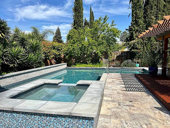 This beautiful Parkside home boasts a newly remodeled backyard with a stunning L shaped pool, hot tub, covered patio, tree house and more! Interior updates include hardwood flooring throughout, an updated kitchen with a large island and breakfast bar, Granite counters, SS appliances & a gas range. Additional features include a 3 car garage, court location directly across from the sports park, newly painted exterior, large side yard, indoor laundry room, updated bathrooms and more! Close to both 580 and 680 freeways, shopping and downtown Pleasanton.