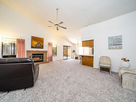 Wonderful home is located near shopping centers and minutes to the 99 freeway. Spacious floor plan features a fireplace and designed with vaulted ceilings. Newer carpets were installed throughout. Kitchen includes pantry, built-in microwave and breakfast bar that opens into the dining room. Master bedroom includes sliding door to access backyard and sizable walk-in closet. Bathrooms offer double vanity sinks. Newly painted exterior. Low maintenance in the frontyard and backyard. House is move-in ready!