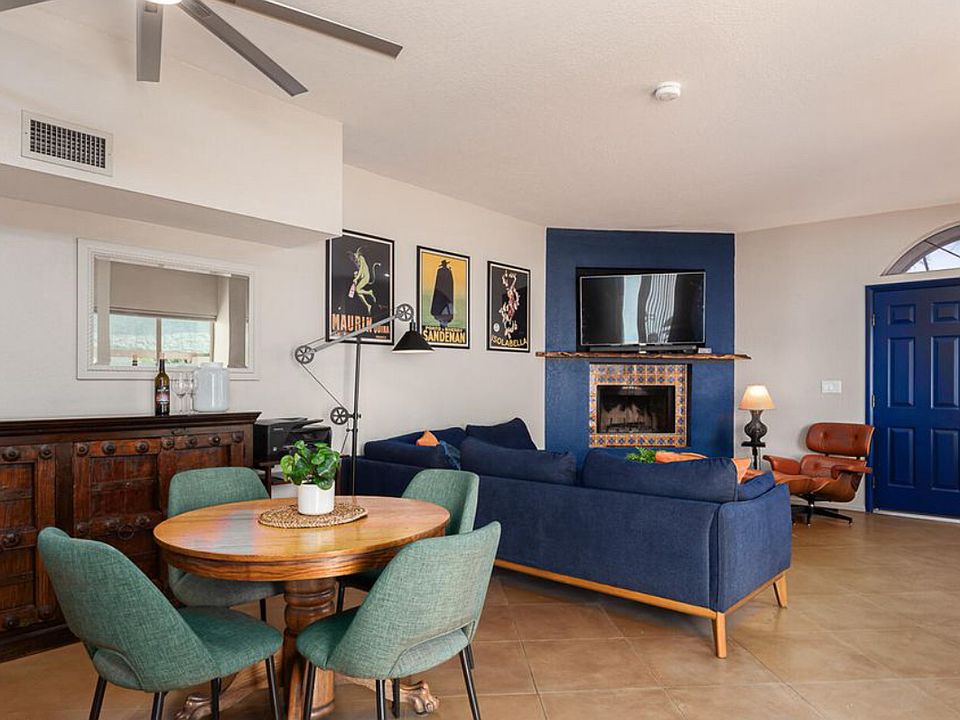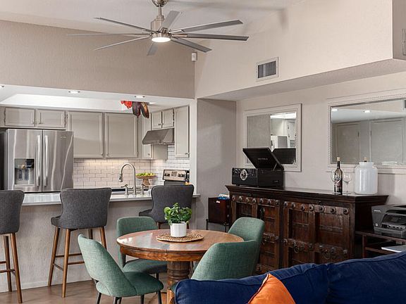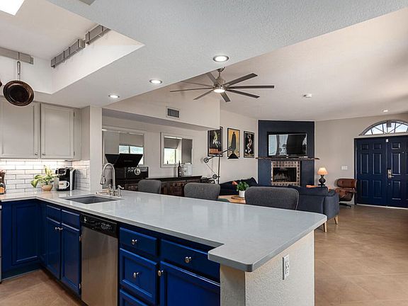 Open floor plan Modern design Skylights Large yard EV charger Pet friendly Lease monthly: $2,100 Beautifully remodeled townhouse located in the heart of Tucson, just minutes from shopping, parks, and dining. This home features a modern open floor plan, concrete overlay flooring, quartz countertops, soaring 15-foot ceilings, and skylights that bring in abundant natural daylight, creating a bright and airy atmosphere. Inside, you'll find a clean contemporary design with a sleek built-in fireplace in the living room, adding both warmth and style. Fully updated and move-in ready, the home includes utilities, ample storage, a spacious two-car garage, and a private backyard with a charming treehouse, outdoor fireplace, and standing propane warmer, perfect for cozy evenings and family entertainment. Pet-friendly for your furry companions. Equipped with a high-amperage plug-in compatible for electric vehicle charging in the carport, ideal for EV owners. Please note: Furniture is for staging purposes only and is not included in the lease Tenant pays for water, and electricity. Last month's rent is due at lease signing. No smoking permitted on the property. Up to three pets allowed per household.