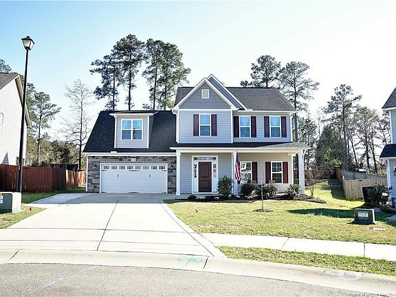 You don't want to miss this gorgeous 2 story home tucked back in a quiet cul-de-sac, in the Jack Britt school district! The home features 3 bedrooms w/a Bonus room that can act as a 4th bedroom w/a closet, 2.5 baths, a Great Room with electric fireplace, dining room and master bedroom w/coffered ceilings, beautiful kitchen w/granite countertops, lots of cabinet space, and stainless steel appliances. The home is wired as a smart home w/surround sound speakers. Enjoy some outdoor time under the covered front porch or in the large back yard with a screened in covered porch and patio area. Just minutes away from shopping, restaurants, schools, walking tracks, parks, and a short commute to Ft. Bragg. Schedule to see it today!