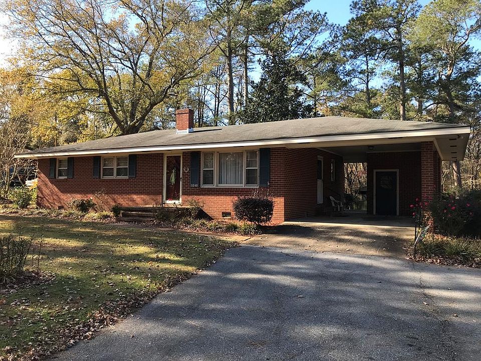 Wonderfully kept brick ranch style home situated on 6.5 acres. Approx. 1 acre cleared around house as yard and other 5 acres are wooded and provide a nice privacy buffer for this property. Attached carport. Circular paved drive. Established grapevine. Very well kept. New gas pac heating/air unit in 2016. Brand new range. New elec. panel. Large open area between kitchen and family room. Ranch stype.