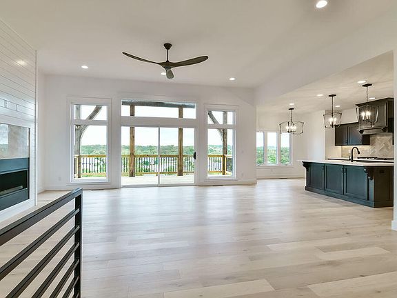 Brand new in Rivercut! Located in a cul-de-sac with views of golf course and valley. All brick/stone exterior with a lighter shade wood flooring planned for living room/kit/din/entry and hallways of main level. Beautiful cabinets and Quartz countertops, Fireplace on the main level. 3 BR's on main level with 2 additional in basement. Generously sized wet bar in basement. Family room in the basement. Stainless appliances with gas range& walk-in pantry in kitchen. Full sod, & irrigation. Buyer to do due diligence on correct schools.