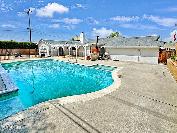 Four bedroom single story pool home high up in the desirable Texas Tract. This is the model that everyone loves! The big four bedroom with almost 1,800 square feet of living space not including the potential bonus area in the garage that has not been built out yet. The home features a two car garage with a large driveway that can accommodate additional parking for perhaps an RV. The rear yard is spacious. It features an oversize swimming pool with a spa. Enjoy endless summer parties and evening dinners under your covered patio. A firepit is the perfect spot to relax on summer evenings or have S'mores party with the kids. The patio also features a wood burning outdoor fireplace! Newer vinyl windows have been installed to provide energy savings and convenience. The kitchen is huge and features a large peninsula which is perfect for informal dining and when you are entertaining. Recessed lights, a double oven, and long tile counters provide the perfect space for prep. This model is really popular amongst buyers who remove many of the interior walls in the kitchen, dining room, and living room to create one large open great-room. A wood burning fireplace is perfect for those cooler nights when you want to curl up and watch a movie. The master is huge and features a sliding glass door leading out to the backyard and spa. The closet features large mirrored wardrobe doors. The remodeled en-suite bathroom features two sinks. The hallway bathroom has a tub and shower. Come see why the Texas Tract consistently ranks so popular with buyers. You will love living here!