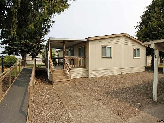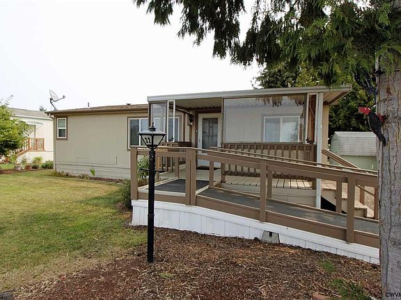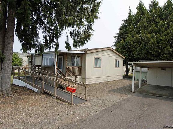 Savor the spectacular, rural views as you relax on your glassed in front deck. This home looks out to Mary's peak; the highest peak in the Oregon Coast Range. Watch the sunset in the West as it dips behind the farm fields and mountains. Well maintained and updated with vinyl windows, a newer roof, recent exterior paint, and newer laminate flooring in the living areas and master suite. Enjoy the split bedroom floor plan with a master suite that is an oasis of privacy on one end plus the two bedrooms with another full bathroom on the other end. Entertaining is a breeze with the a living room that employs vaulted ceilings and flows through to the kitchen for a welcoming feel. The cook can always be involved with the eat-in kitchen or chat with guests as you prepare a meal. The utility room, located just off of the kitchen, is convenient and functional with generous storage and both a washer and dryer included in the sale. The master suite is made complete by the walk-in closet and private bathroom featuring a step-in shower for easy accessibility. Relax in the quiet seclusion of your backyard on the covered deck. Large storage shed near the house and carport, as well as a ramp that leads to the front entrance offers even more convenience. This home is perfect for someone who desires the feel of rural and tranquil living, yet hope for a quick drive to Corvallis, Albany or Tangent. Oakvilla Mobile Home Park is an all-age community located off Peoria Road in a rural setting. Included in the park rent is water, sewer, garbage and cable. Small cats and dogs under 20 pounds are allowed inside or outside on a leash with park approval. For more information or a private tour, please give us call today.