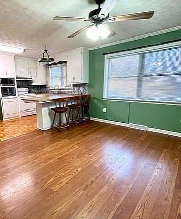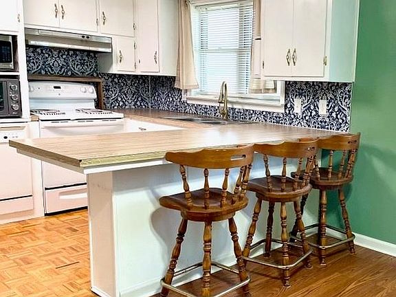 The kitchen has lots of cabinet space and is open to the breakfast room. This used to be a 3-bedroom home and is perked for same. A wall was removed to make one of the bedrooms larger & add a walk-in-closet; it can easily be converted back to a 3 BR with the entry door still in place. There is an additional gas hookup in the flex room (den) & an opening in the chimney for a woodstove, this room has its own entrance. Laundry room has window.