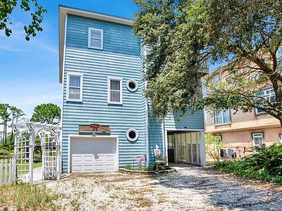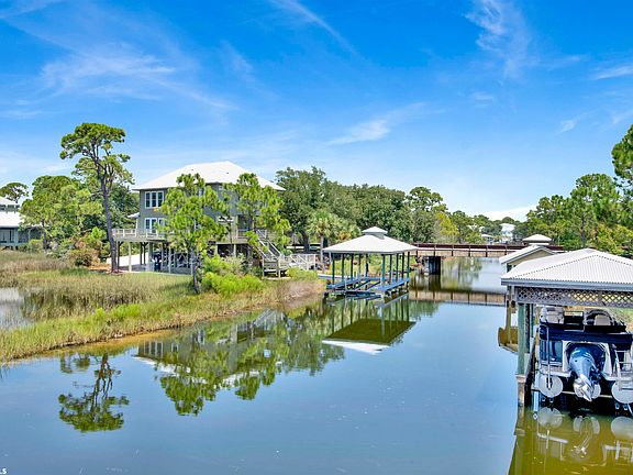 Tucked away behind a thick canopy of native Live Oak trees, a truly unique island paradise awaits discovery! Situated on coastal Alabama's only privately-gated island, Ono, this creatively designed home is the perfect place to create coastal memories that may last a lifetime. The three story raised beach cottage overlooks direct views of the canal that leads out to the intracoastal waterway, and has breathtaking views of "big water" just beyond the marshlands in front of the home. A boat dock attached by way of a board walk offers an excellent place to tie up the boat after a long day of enjoying Alabama's waterway oasis. Inside, step back in time to a home that was designed to pay tribute to days gone by, while still enjoying the modern conveniences of the present. A large living area is anchored by an attractive hearth and fireplace, but the show stopper is the view from the windows and French doors that open to the back balcony. The upper balcony off of the living room overlooks the canal, marsh, and "big water". Back inside, the living room spills into the large dining area, and the open kitchen anchors the back wall. All rooms feature beautiful hardwood floors. Also on the main floor, bedroom one is privately tucked to the side away from the entertaining space. A stunning full bath, designed to resemble a home built in the 1920s, serves the main level and first bedroom. An additional sleeping room faces the open water views just off of the living area, and has access to the screened in porch. Upstairs, a large flex space, currently used as additional sleeping room, would be a wonderful bunk room or media room. Off of the flex space, bedroom two is located at the rear of the home behind a bank of salvaged French doors. Connected to both the bedroom and the flex space, a large laundry and bath combo occupy half of the third level. This unique home is a retreat away from the world! Is island living for you? Buyer to verify all pertinent info. As-Is