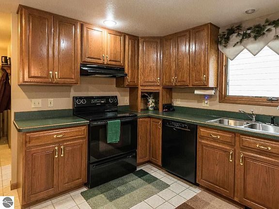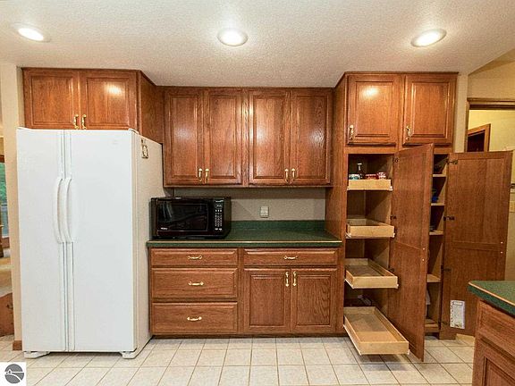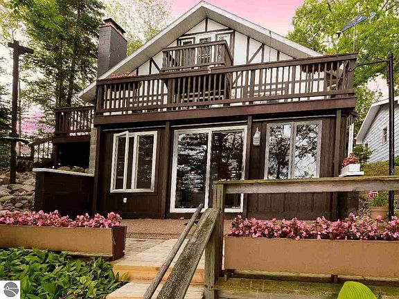 Lovely, comfortable home on all sports AuSable Lake. The home was nearly 100% remodeled in 2000, with additional changes made over the years to make this a spacious, well thought out retreat. The master bedroom is on the main floor with a walk-in closet and an attached bath with double sinks, a Jacuzzi and separate shower. There is also a den/fourth bedroom, kitchen (lots of cupboards), dining room with beautiful cupboards and a living room with fireplace. All this leads to a large deck and steps to the lake. Upstairs there is one bedroom overlooking the lake and a dormitory/bedroom plus a 3/4 bath. Downstairs you will find a family room (with tile floors and a fireplace), some extra sleeping space, the laundry room, a third bathroom and, best of all, a large finished sunroom (11x14) with tile floors and sliding doors leading out to the lower deck. By the water you will find a boat house with electricity. There is an attached two car garage and a very large shed in the side yard. The house is buffered from the neighbors by a nice natural area with trees and ferns.