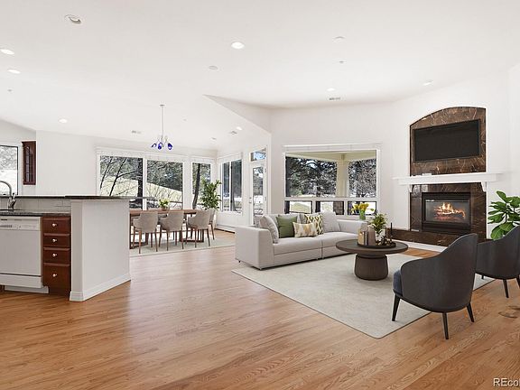 No expense was spared during the construction of this gorgeous executive home--beautiful hardwood floors sparkle beneath 14 foot vaulted ceilings, while walls of windows let in the natural light and allow occupants to view the majesty that can only be found in Castle Pines. The gourmet kitchen features double ovens, slabs of deep granite, 42" cabinets, a corner pantry, bar seating, and a perfect perch to interact with guests in the adjoining Great Room, covered porch, and dining area. The centerpiece of the home is not to be missed-- a completely custom spiral stairway that welcomes occupants and guests to the home and encourages further exploration!