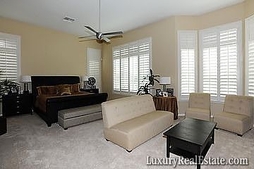 Situated in the much sought after community of Arboleda, this fabulous estate boasts a light Contemporary atmosphere with functionality and style. Throughout the home you will find custom paint, plantation shutters, Travertine tile, Granite countertops, upgraded hardware and carefully selected lighting fixtures. Chef's delight kitchen with stainless appliances, center island, bayed breakfast area & breakfast bar. The 4736 square foot floor plan includes an inviting family room with fireplace & view windows to rear grounds, formal living & dining rooms, plus an office. Incredible master suite with sitting area, fireplace, walk-in closet and spacious master bathroom. Private front courtyard, extended rear covered patio, huge lot and finely manicured grounds complete this very desirable home. Community tennis court and children's play area.