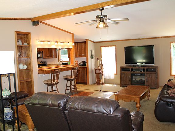 Nestled amidst a serene landscape of 5 sprawling wooded acres, this charming, updated and well-cared-for, double wide (on foundation) offers a blend of comfort, space, and natural beauty. Located in a tranquil setting, this property promises privacy and a retreat-like atmosphere. Upon entering, you are greeted by a spacious living area that boasts ample natural light and a cozy atmosphere, perfect for relaxing or entertaining guests. The home features three bedrooms, each offering peaceful views of the surrounding woods and ample closet space. The master bedroom includes an updated en-suite bathroom with a walk-in shower and walk-in-closet for added convenience and privacy. The updated kitchen is equipped with modern appliances and plenty of cabinet space, making meal preparation a breeze. Cabinets are high-end wood (granite counter tops) with all the bells and whistles! The Eat-In Kitchen provides a welcoming space for family meals or gatherings with friends. There is also a breakfast bar connecting the kitchen and living room. A standout feature of this property is the expansive three-car garage, ideal for storing vehicles, tools, or even converting into a workshop. The garage offers flexibility and ample storage space for outdoor equipment and recreational gear as well as a large second-story storage space that could become an additional "get-away". Step outside to discover the true allure of this property-the vast, wooded grounds that surround the home. Imagine enjoying morning coffee on the spacious deck, listening to the sounds of nature, or exploring the woods throughout the property. This outdoor space is perfect for nature lovers and those seeking a peaceful retreat. Situated in a desirable location, a short drive from I69 in Martinsville, Hwy 142 in Monrovia, I70 Indianapolis. This won't last long! Schedule your showing immediately!