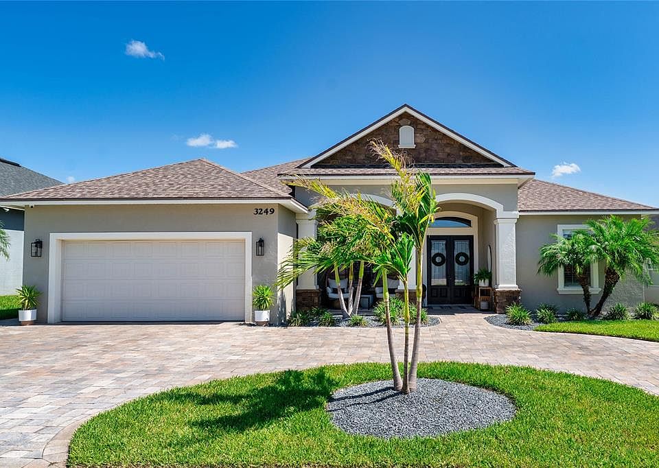 Stunning salt water pool home available with beautiful landscaping! This 4 bedroom 3 bath pool home is located in one of the most desired gated communities of Lakeland, Highlands Grace. Built by Tapia, this Home features 4 bedroom and 3 full baths (one of which functions as a pool bath as well!) with 2620 sq ft. of living area. You enter through the double door entry into an extra large entrance hallway. The first room immediately to your left as you enter could be used as an office or a den. As you proceed further from the entrance you enter a massive great room, with trey ceilings and an open concept to the kitchen. The kitchen has stainless steel appliances, dark wood cabinetry and an extra large island just itching to have pizzas rolled out on it or to host a gathering. The family room has sliding doors that open to a beautiful, screened in pool and covered patio area. The screened in pool lets you keep the sliding doors open during the cooler months without letting bugs in. The master suite is off the family room and has beautiful tray ceilings. The master Bath has a separate shower and soaking tub and a large, built out, walk-in closet. Two of the bedrooms are located off the kitchen and are separated by a hall bath, while the 4th bedroom is located at the back of the home and has a built-in bunk bed, great for guests. The 3rd bath is located next to the 4th bedroom and has access to the pool area. Special features to this home are the beautiful plantation shutters throughout the home, most of the closets have been built out to maximize storage and organization, a circular driveway and lanai with sealed pavers, a mini split AC in the garage with insulated garage doors, plus so many more you just have to come see for yourself!