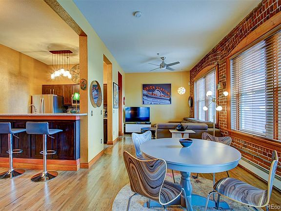 Rare opportunity to own a little piece of history in the Denver Highlands neighborhood. Overlooking a beautiful park like courtyard, this charming two-level condo features 2 bedrooms, 1.5 baths and laundry. A few of the many upgrades and inclusion's are refinished hardwood floors on main level, engineered laminate flooring on lower level, quartz countertops, eating counter, stainless steel appliances, washer/dryer, barndoors and exposed brick walls throughout. Oversized windows on both upper and lower levels bring in a ton of natural light. You will love the extra storage space hidden below the eating counter, as well as, locker style storage and custom closet in primary bedroom. Enjoy summer grilling and sunbathing on the common patio, just a few steps away. Oversized garage and one un-assigned space in lot. Location is center to many restaurants, shops, evening entertainment and parks. Just steps away from Highland Park and Woodbury Library. Quick access to downtown, I-70, I-25 and others main highways and roads. The building was built in 1919 by Harry Edbrooke and became the Tilden School for Teaching Health. In 1996 it was converted to condos. It is now on the National Register of Historic Places. One of the most sought after neighborhoods in Denver!