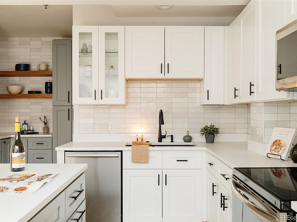 Beautifully reimagined loft-style condo in the heart of Highlands Square. This rare two-story residence in Fairview Place has been thoughtfully remodeled - with permits - from top to bottom, blending classic charm with modern sophistication. The chef’s kitchen features quartz countertops, custom shaker cabinetry, a full-height tile backsplash, and stainless steel appliances. Refinished hardwood floors flow throughout the main level, complemented by a newly added powder bath for guests. Dual primary suites each offer a serene retreat with new en-suite bathrooms and ample space for a king-sized bed. Convenient in-unit laundry is located on the bedroom level. A private garage plus an additional off-street parking space provide flexibility for vehicles and gear alike. The impeccably maintained grounds create a park-like setting for playing with your dog or a picnic on a perfect Denver day. A communal patio is perfect for grilling. Highland Park is just a block away for more outdoor exercise and relaxation. Set just a block from the vibrant restaurants and shops of Highlands Square, this immaculate home offers the perfect blend of style, comfort, and convenience. With downtown Denver only minutes away and quick access to I-70 and I-25, every Colorado adventure is within easy reach. This is an incredible perfectly updated lock-and-leave home in one of Denver's most coveted neighborhoods close to everything. Welcome home.