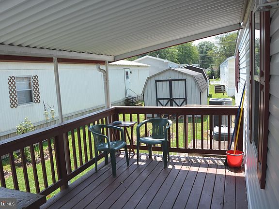 Affordable one-story living in Harborton Place Estates. Large inviting kitchen with appliances and access to laundry area. Living room located adjacent to the kitchen. Spacious primary bedroom with private full bathroom. 2nd bedroom and additional full bathroom are located at the opposite side of the house. Covered 14 x 8 wood deck for outdoor enjoyment. Updated efficient heat pump & central air in December of 2022. Home was built in 1998. Functional shed for additional storage needs. Two private off-street parking spaces. Accessible metal wheelchair ramp. $570/Month lot rent includes trash. Close to major amenities. Make this your home today!