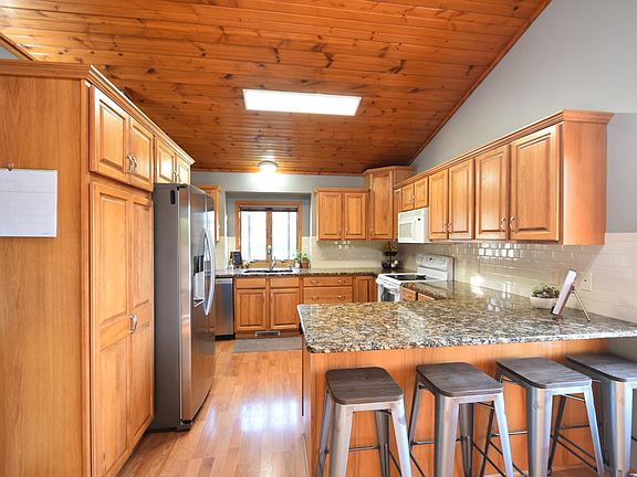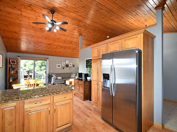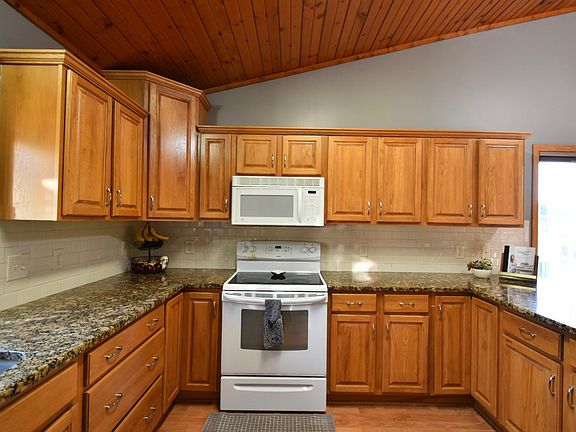 Fully finished Walk Out Ranch! This 5-bedroom 2-bathroom home features an updated kitchen with granite countertops, lots of cabinet space, eat in kitchen, ceramic tile backsplash, vaulted ceiling in kitchen living and dining, spacious dining area, 3 bedrooms on one level, fireplace with stone finished in lower-level family room. Exterior presents brick accent, NEW roof, beautiful, landscaped yard and large rear deck for entertaining and relaxation.
