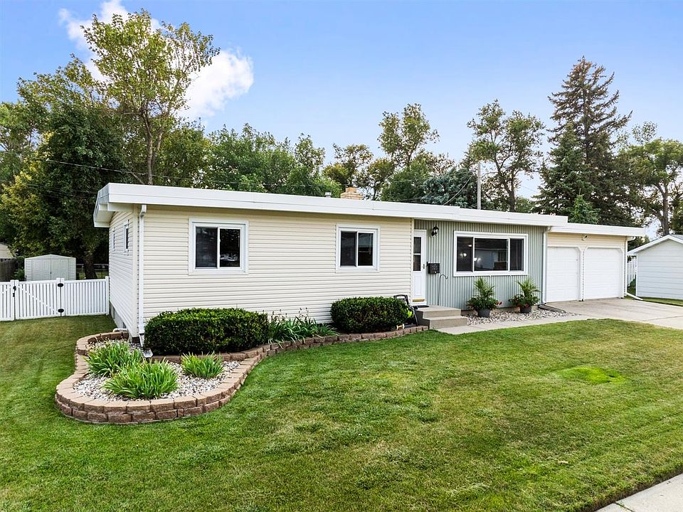 Welcome to 20th Ave NW! This mid-century ranch home has been updated to meet all of the modern conveniences. The home features 3 bedrooms, 1.5 baths, and a blank slate unfinished basement where you could build some equity in your new home. The home also features an attached 2 stall garage, a fenced in yard with mature trees and 2 sheds, and plenty of beautiful landscaping. When you first enter the home, you are welcomed into the living area which features a wood fireplace. Into the kitchen, you'll appreciate the modern touch to the updated cabinet faces, stainless steel appliances, and plenty of storage. The dining room is near the kitchen and opens to the backyard. The hallway will lead you to the bedrooms and shared bath. The primary bedroom has a private half bath, and the shared bathroom is in the hallway. The hallway bathroom features a tiled shower and plenty of storage. The other two rooms are similar in size and both have large closets. The basement is unfinished but has a shower and a sink already plumbed in. The washer and dryer are in the basement as well. There is plenty of storage in this area for all of your extra household goods. With a bit of sweat equity, you could create two additional bedrooms, a bathroom, and a secondary living space. If you're interested in learning more, contact your favorite agent today!