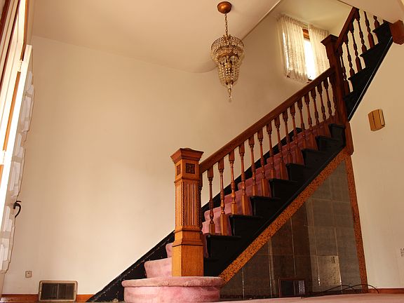Large home with a covered front porch on a fenced in corner lot, home also has an over-sized 2 car detached garage, generous room sizes, detailed plaster work, and a rear additional with powder room.