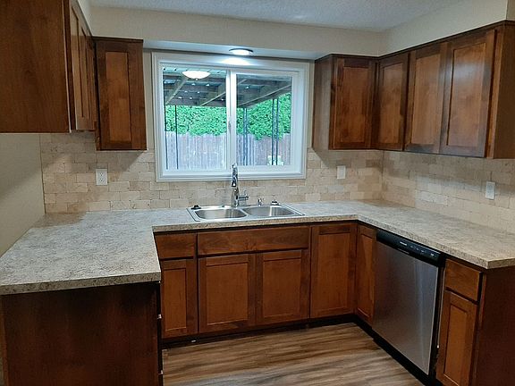 Nicely remodeled home with large lot! This home has been remodeled and is ready to move in! This home has new kitchen cabinets with new counters and tile backsplash. New Stainless Appliances New Interior Paint New Doors and Trim New Waterproof Laminate Plank Flooring New Carpet Fire Place in living room. Large back yard with covered patio. This home has heat pump with central air. Seller is Oregon Licensed Real Estate Broker